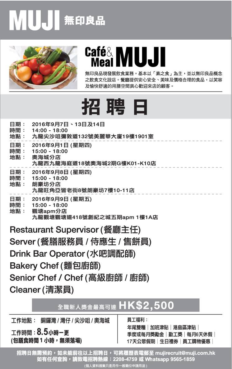 MUJI招聘日, 立即去馬